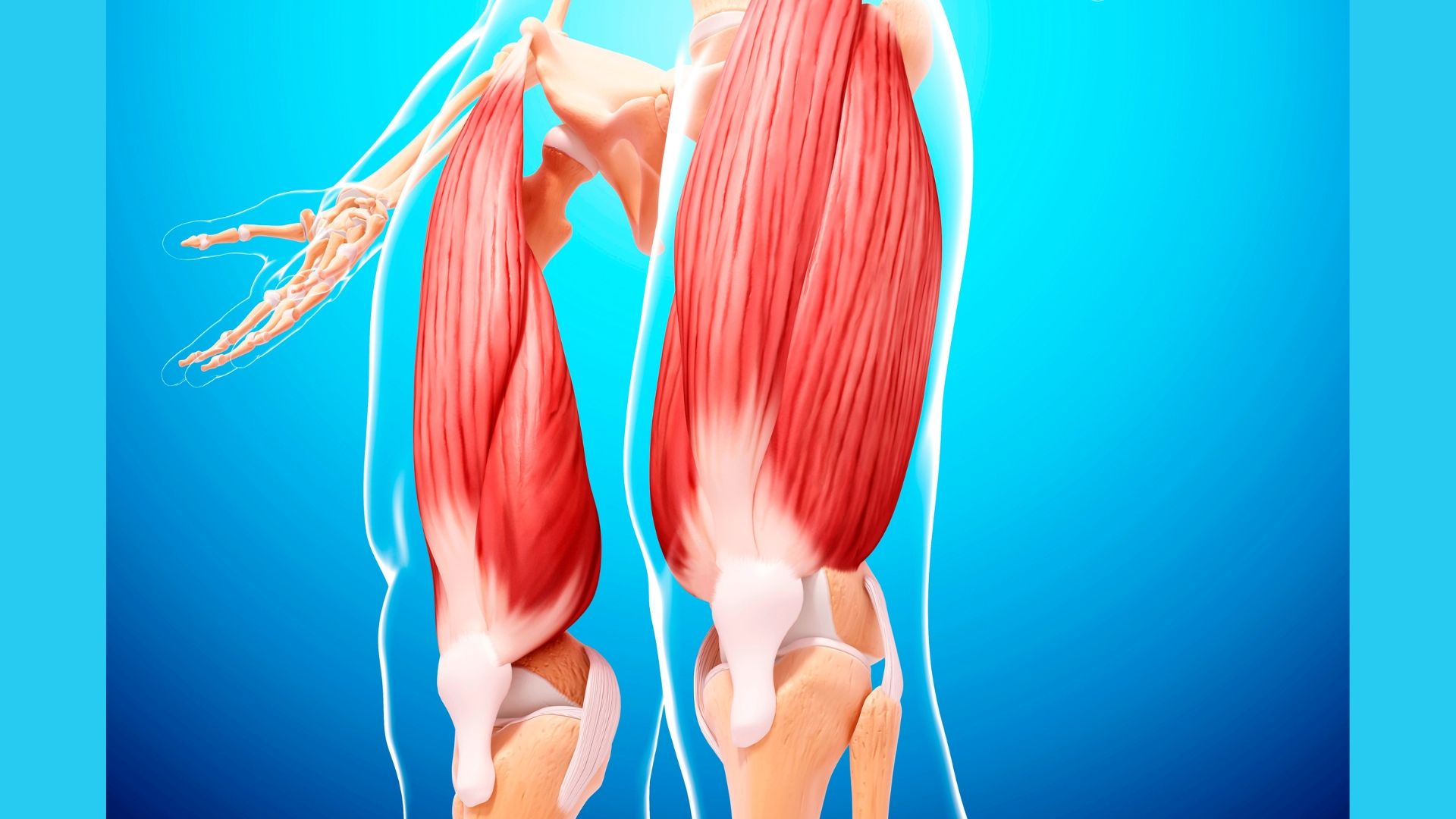Our quadriceps muscles (run across the whole front of our thighs):